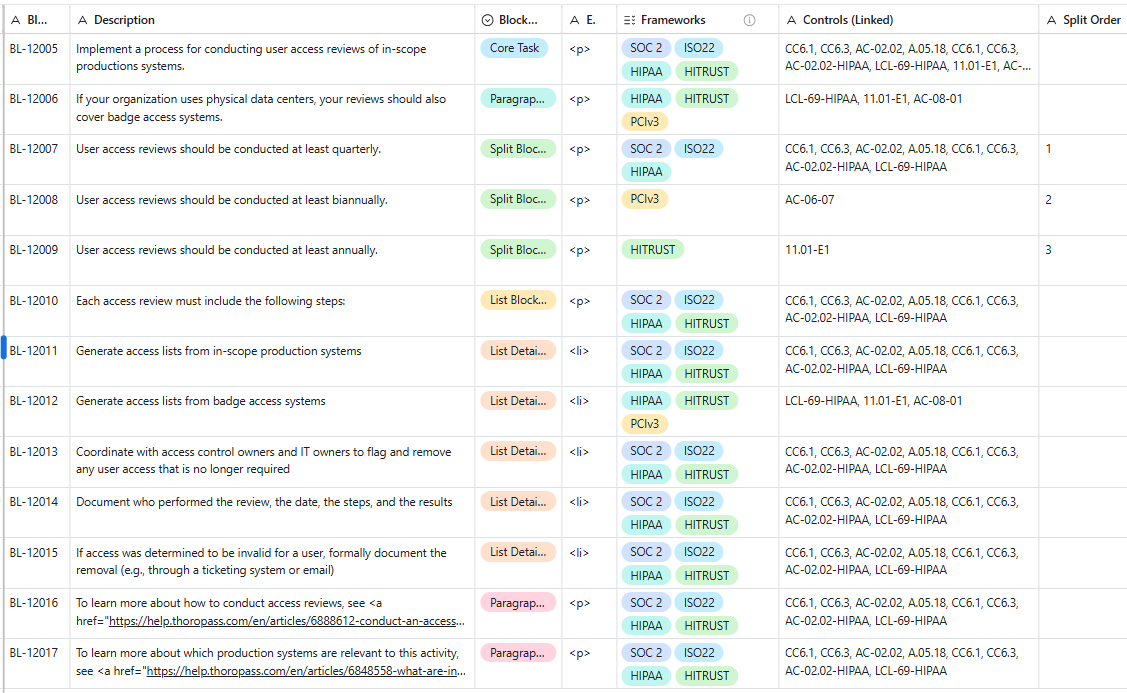 Unfortunately, the expert content in Thoropass’s platform was written and released for each framework individually, sometimes months or even years apart. If a client purchased more than one framework, they would be forced to see multiple versions of their content, including instructions that often conflicted with each other.